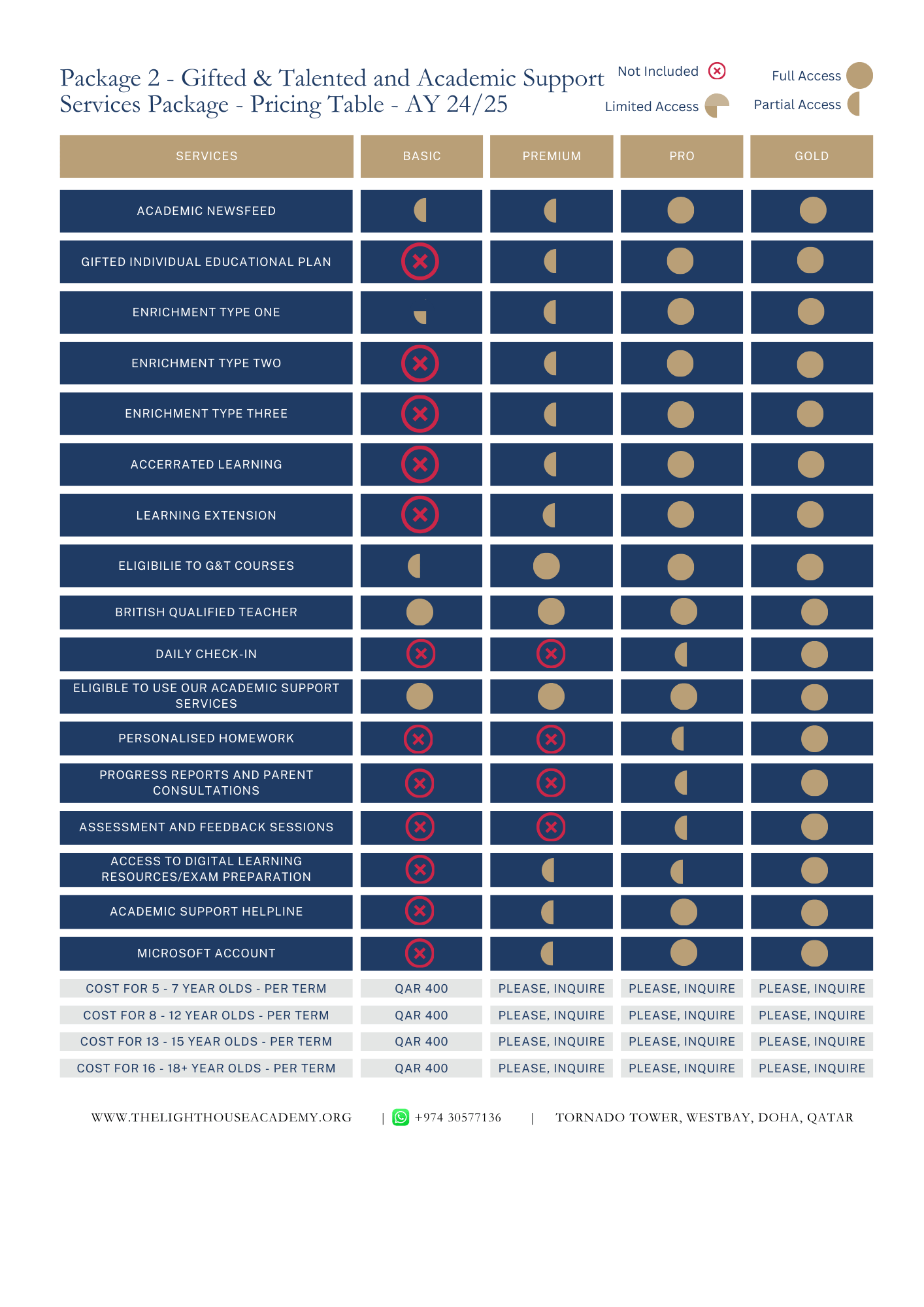 Package 2 - Pricing Table
